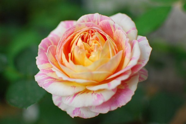 莫奈是個(gè)可愛與獨(dú)特相結(jié)合的藤本月季品種。它植株高度大概在100-130厘米左右,冠幅寬度大概110厘米左右,花徑平均數(shù)大概在7厘米左右,花瓣數(shù)量大概在41枚瓣。莫奈開花的形狀是環(huán)形,它也是一款條紋月季,它是一種橙黃色及淡粉色相間的中大花徑的藤本月季,它擁有粉色、黃色和奶油色的三種柔和色彩,有著特別強(qiáng)的吸引力。莫奈花的顏色還會(huì)隨著氣溫變化,在高溫季節(jié)顏色會(huì)變淡甚至是消失、花朵變小,這是很多條紋月季的共性,但氣溫一旦轉(zhuǎn)涼它的花色就會(huì)恢復(fù)、條紋變得明顯,花朵變得飽滿。這三種顏色隨意地灑在每一片花瓣,顏色出乎意料的合拍,就像莫奈最為著名印象派繪畫中的一副一樣,不得不說這種花很神奇,充滿藝術(shù)魅力。