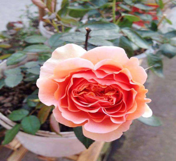 音樂(lè)廳月季的外形特別漂亮,而且是多個(gè)季節(jié)盛開(kāi)。它有點(diǎn)像老玫瑰花型,開(kāi)花形式是四等分。音樂(lè)廳月季有著獨(dú)特的色彩和卷曲又緊密的花瓣。音樂(lè)廳的形狀是花杯狀滿心,花開(kāi)放后稍卷邊。它的花徑在7-8厘米左右,它的顏色有橙粉色,還有一些是紅橘色,顏色根據(jù)品種和季節(jié)溫度會(huì)產(chǎn)生變化。音樂(lè)廳的花是重瓣,它的花瓣數(shù)大概有100多枚瓣。它的香味也挺獨(dú)特,聞起來(lái)有點(diǎn)像桃香,還有一點(diǎn)像芒果的香味,這種果香味道雖然特別濃,但是卻特別的好聞,濃香卻不膩。