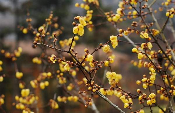 蠟梅的花期要早點,它比紅梅要早兩個月,只要記住臘梅的開花時間,就能知道紅梅的開花時間。