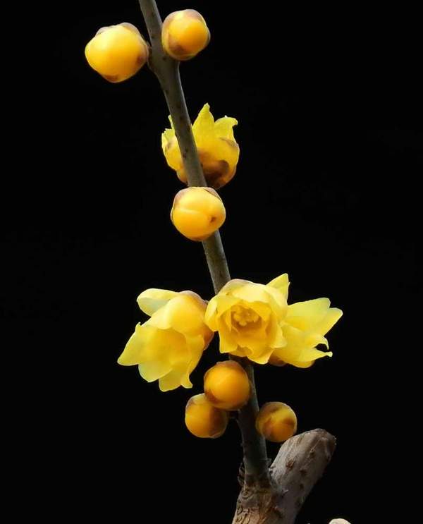 蠟梅的枝條一般都是比較直的;而紅梅有直枝也有垂枝。