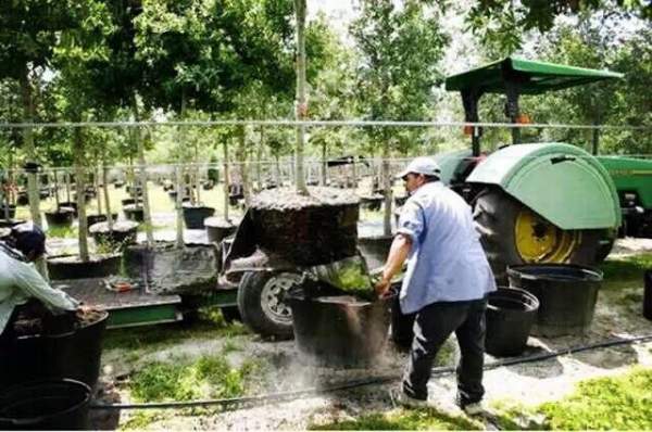 一、傳統(tǒng)的地栽土球苗B&B(BALL & BURLAP)。凡是把樹(shù)苗種在土中,移栽時(shí)挖起,運(yùn)走再栽植的苗木生產(chǎn)方式,在美國(guó)統(tǒng)稱為裸根種植法(BARE ROOT CULTURE)。要出售或施工時(shí),用人工或機(jī)器把樹(shù)苗挖出,再用一種類似于無(wú)紡布一類的材料(BURLAP)包裹起來(lái),這種苗被稱為B & B(BALL & BURLAP)(注:BALL表示樹(shù)的土球,而B(niǎo)URLAP為無(wú)紡布)。
