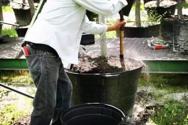 容器苗換盆:添加基質(zhì)